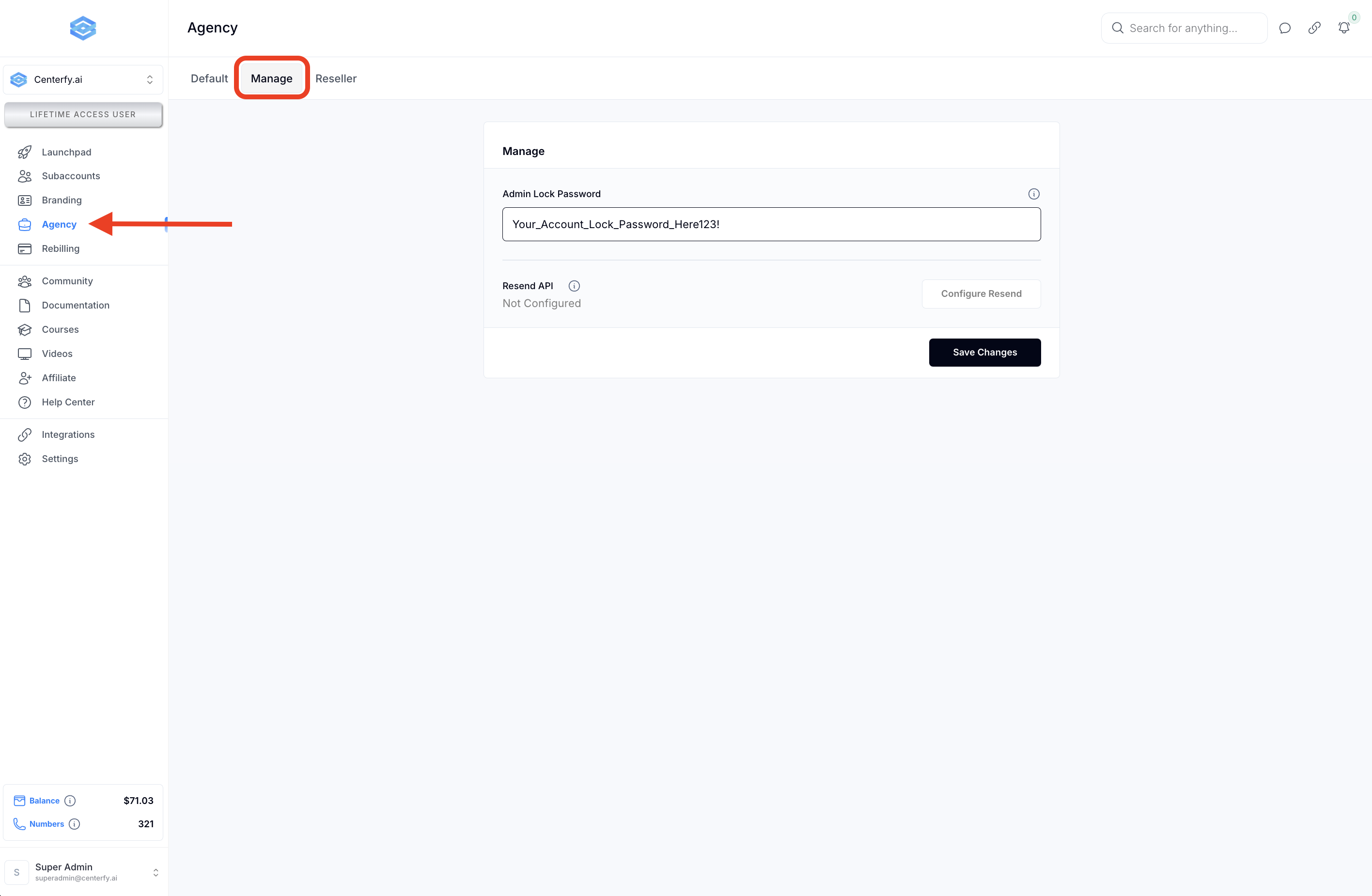 A: Yes. The admin lock password is set at the agency level and can be used across any subaccounts you choose to restrict.