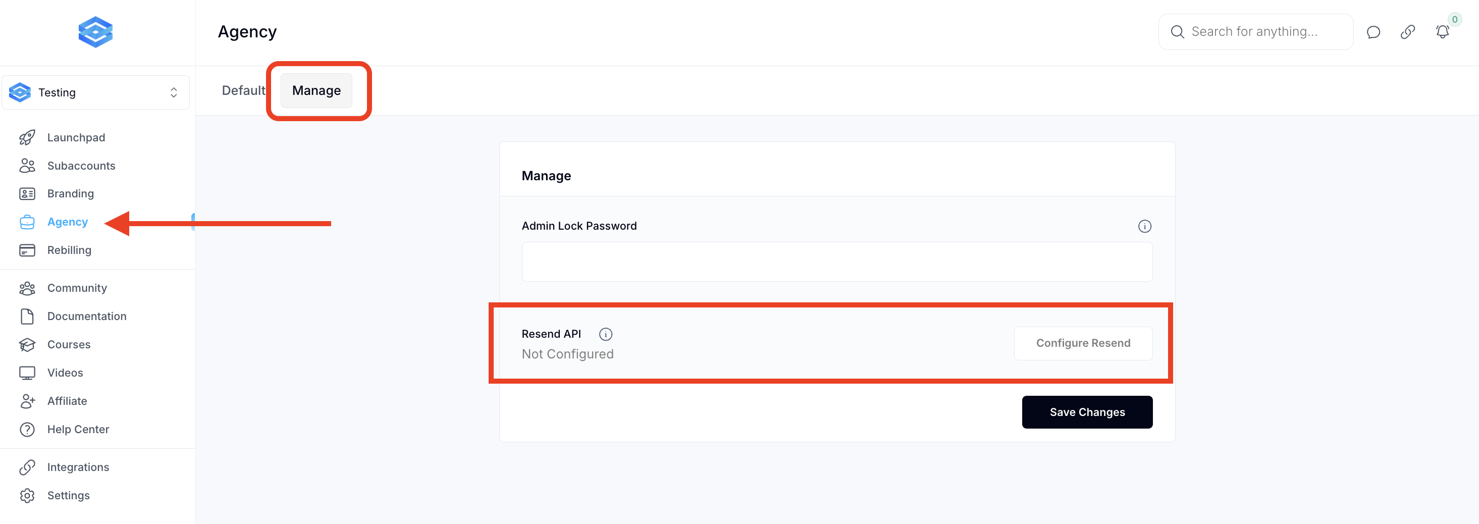 This feature allows you to send automated email notifications (e.g., for failed payments, cancellations, or other important system events) through your Resend account. By connecting your Resend API key in the Agency settings, you ensure reliable delivery and control over your email communications.
