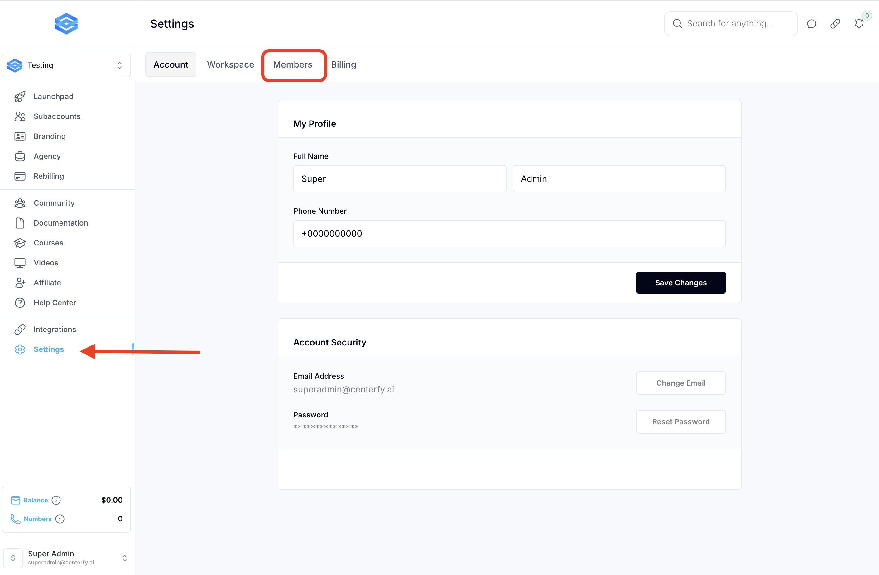 Go to Settings, then click on Members.
